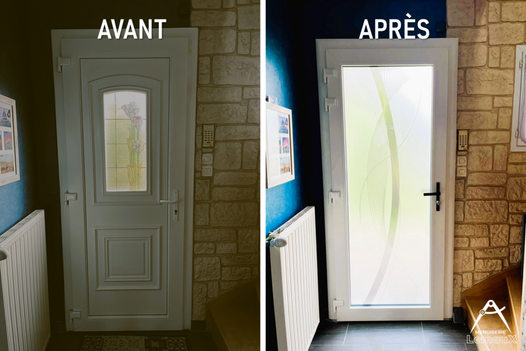 Découvrez ainsi en images « l’avant/après » du remplacement d’une porte d’entrée par nos compagnons de la Menuiserie.